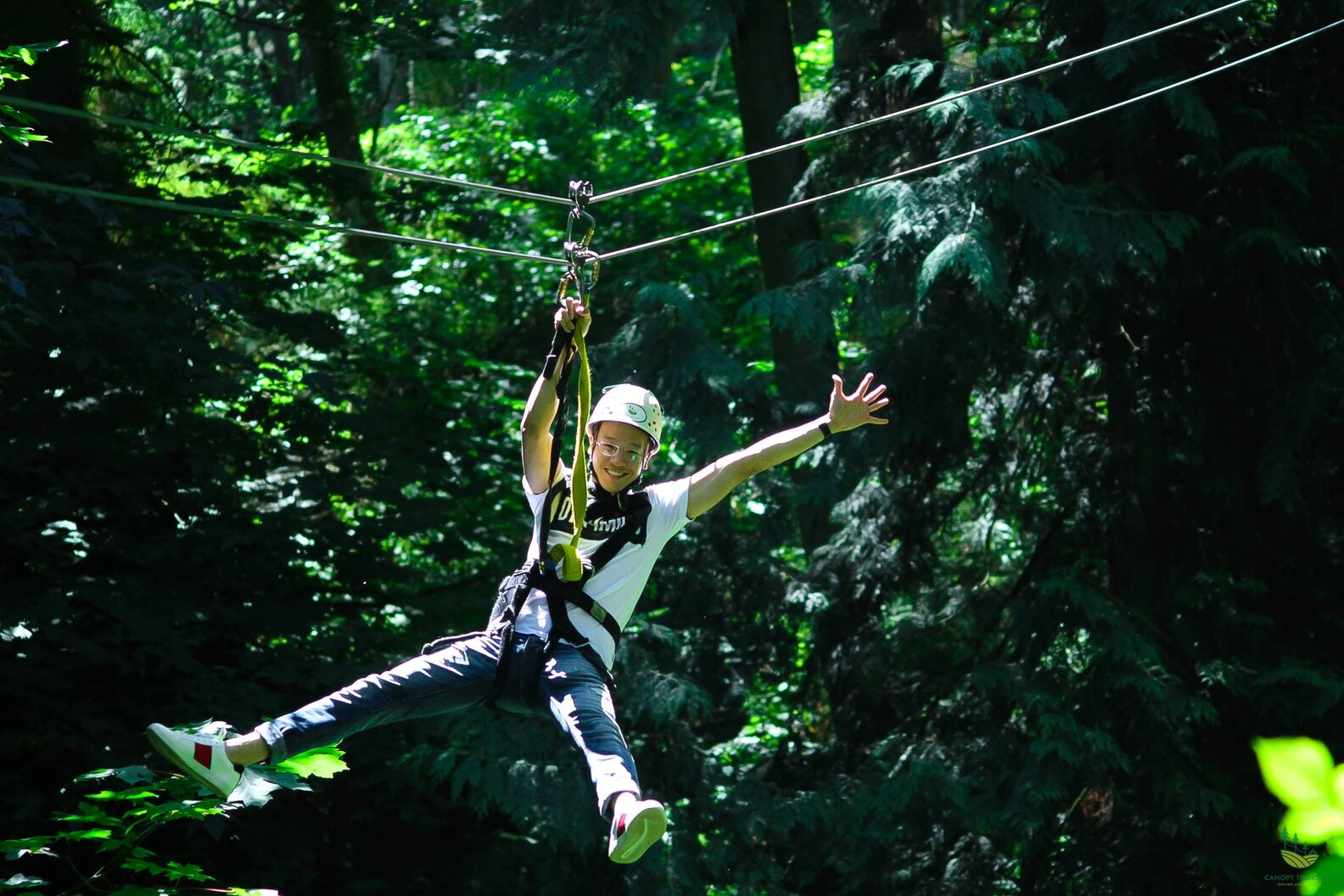 After accidentally slipping through the spaces of the suspended log bridge…I couldn’t help but laugh—zip-lining has a way of humbling you.